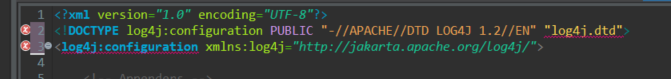 log4j.dtd파일이 해당 위치에서 찾을 수 없다는 에러가 난다.